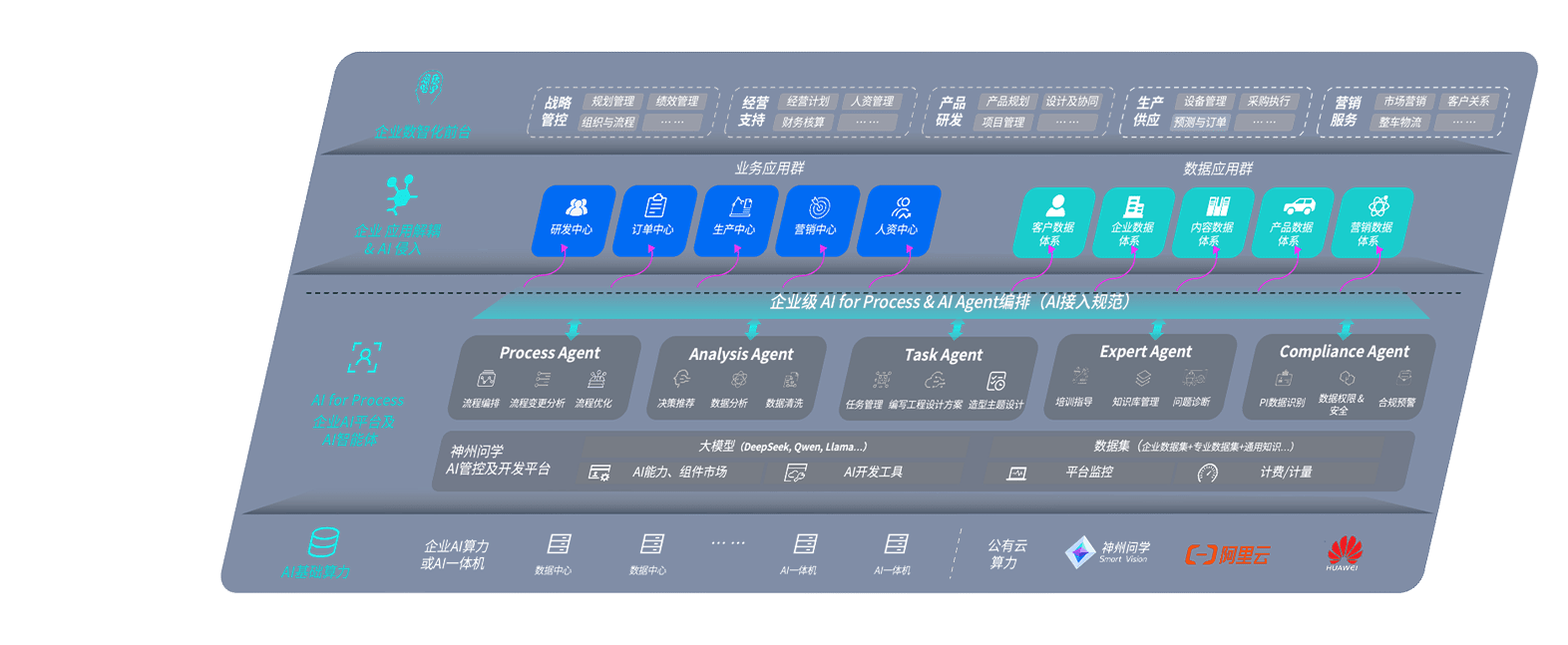 逐梦国际问学智车解决方案是一套基于AI技术的汽车行业智能化系统,,,覆盖从底层算力到顶层AI应用的全栈方案。。方案由算力层、、、、模型层和应用层组成:算力层,,方案支持多种一体机配置,,具备云端灵活部署、、多云适配以及动态优化计算资源的能力;模型层,,逐梦国际问学平台版提供了企业级AI应用一站式构建与管理平台,,支持基于后训练强化技术的汽车企业专属模型的训练、、、评测和运营;应用层,,,,逐梦国际问学DeepSeek版提供包括超级员工、、、、智能招采、、、智能营销、、、、智能客服、、AI for BI等一系列解决方案,,,可助力汽车行业实现数字化转型,,,让管理更智能、、、响应更敏捷。。。。
